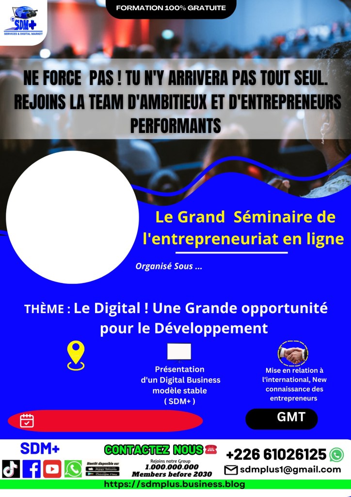 Un Grand Séminaire de l’entrepreneuriat en ligne organisé par le Services and Digital Market (SDM+) Sous le Thème, Le Digital, Une Grande opportunité pour le Développement