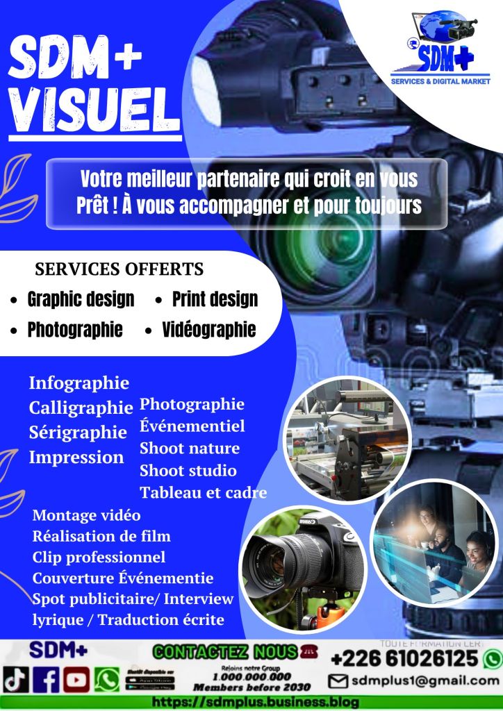 SDM+ est votre agence de Publicité-Visuel. On vous accompagne pour une visibilité, une forte promotion en ligne et en présentiel. Plus de souci pour une forte communication à coup très réduit, que ce soit sur les réseaux sociaux, dans les villes et villages. Pour vos promotions en ville, nous avons une équipe et un Crieur PUBLIC. Nous sommes en Partenariat avec plusieurs radios/télévision